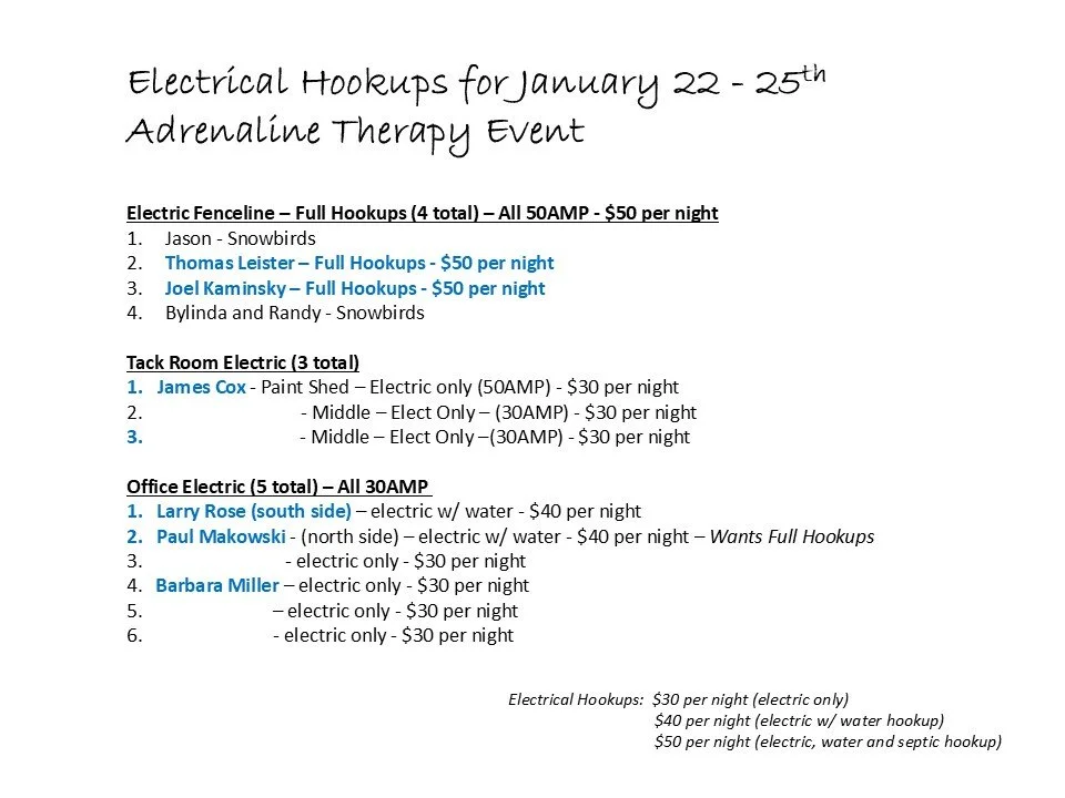 IMPORTANT DATE TO REMEMBER: January 19, 2026 - This is the last day to sign-up and cancel with Bumble Bee Ranch without any penalty. Sign-up after January 19th and walk-in’s incurs a $30 late fee. Cancellation after January 19th, is $50 per person or $75 for a family on one reservation. You can cancel before January 19, 2026, with no penalties. Bumble Bee Ranch does confirmation calls about one week prior to the cut-off date to remind you and make sure your reservation is perfect.
