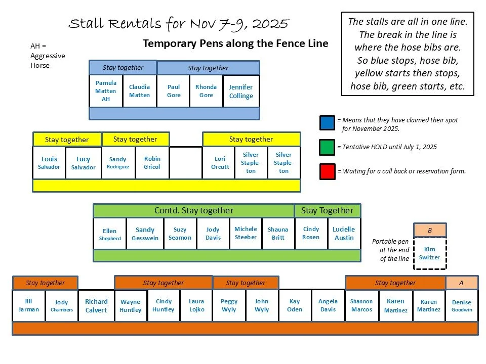 Fence Line Pens - Bring a manure bucket and fork if you are self cleaning. Manure goes in a pile outside your stall for pick-up each day